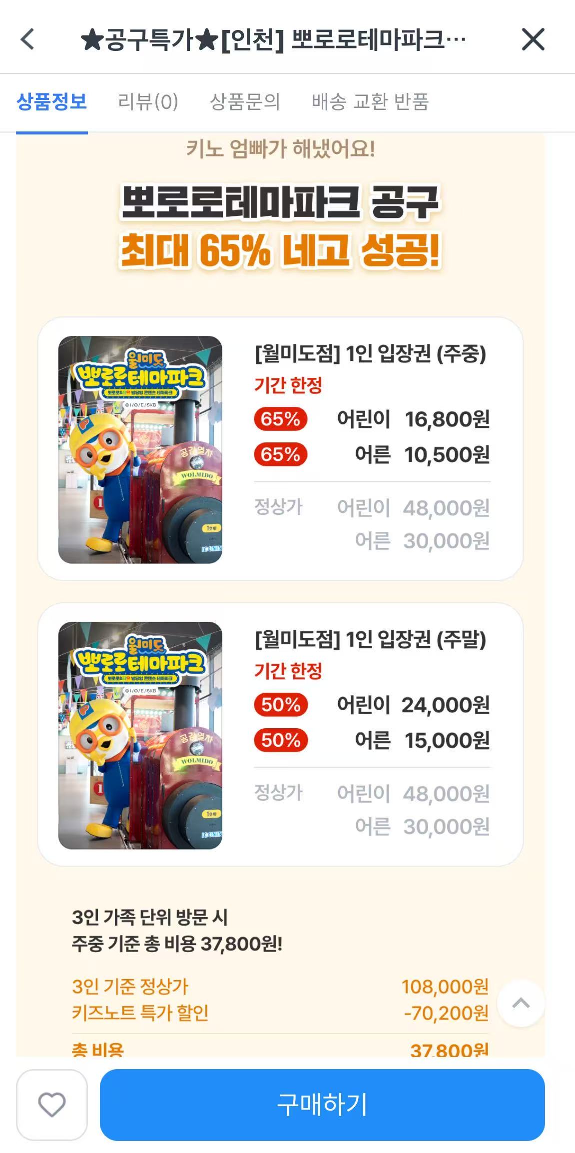 엄빠들은 모두 아는 뽀로로 테마파크 월미도점의 사악한 가격!