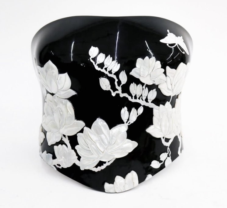 거기다 이 옷은 그냥 옷이 아닌 장인이 자개와 옻칠로 디자인한 한국 전통이 다분히 담겨져 있는 의상이다.